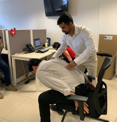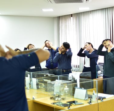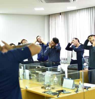 Incorporamos breves sesiones de ejercicio guiadas por un entrenador, optimizando el rendimiento y reduciendo el estrés laboral en solo 5 a 10 minutos por departamento.